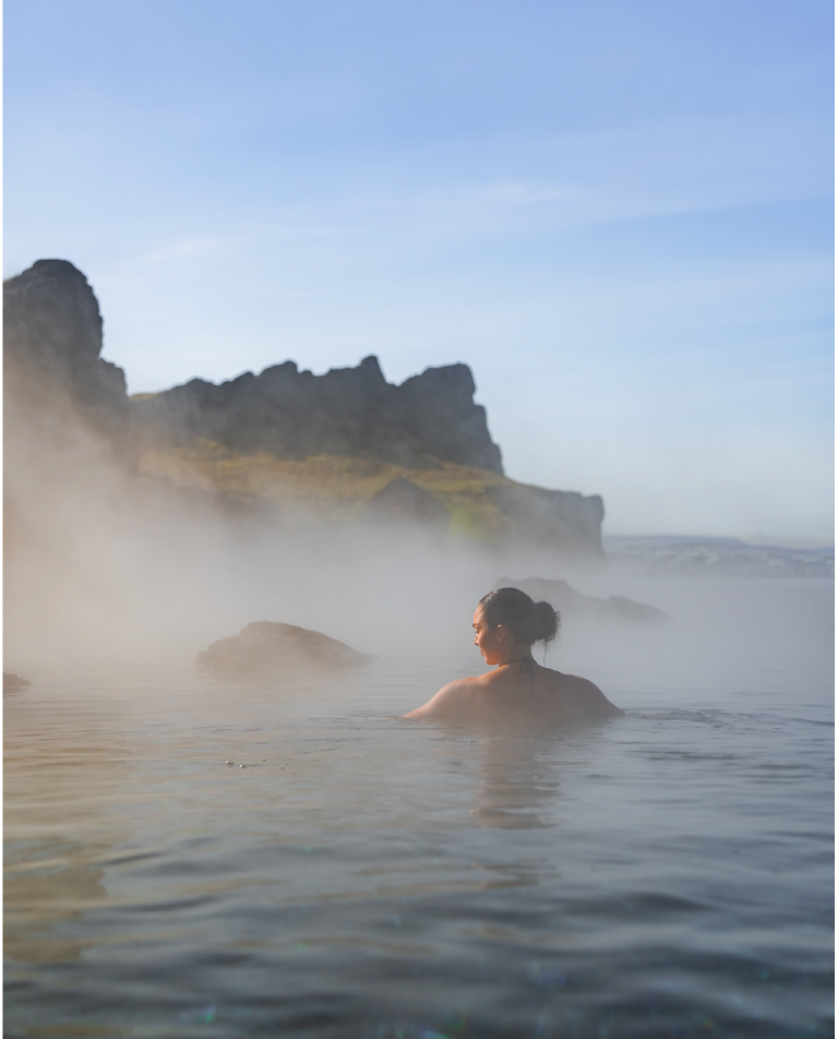 Día libre para relajarse en el Sky Lagoon, con sus aguas termales frente al océano y los siete pasos del spa islandés.